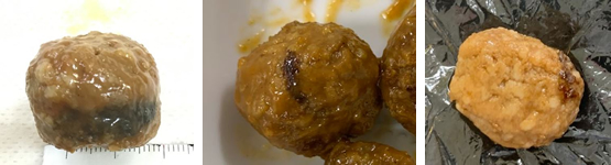 ミートボール/ハンバーグに使用しているたまねぎの皮がビニールのように見えることがあります。
