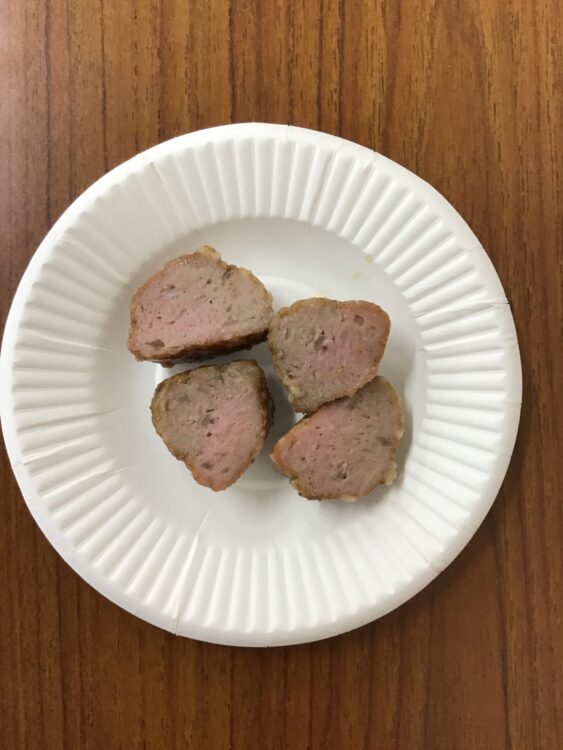 【ミートボール/ハンバーグ】肉の真ん中に色が赤い物があります。 生ではないですか。
